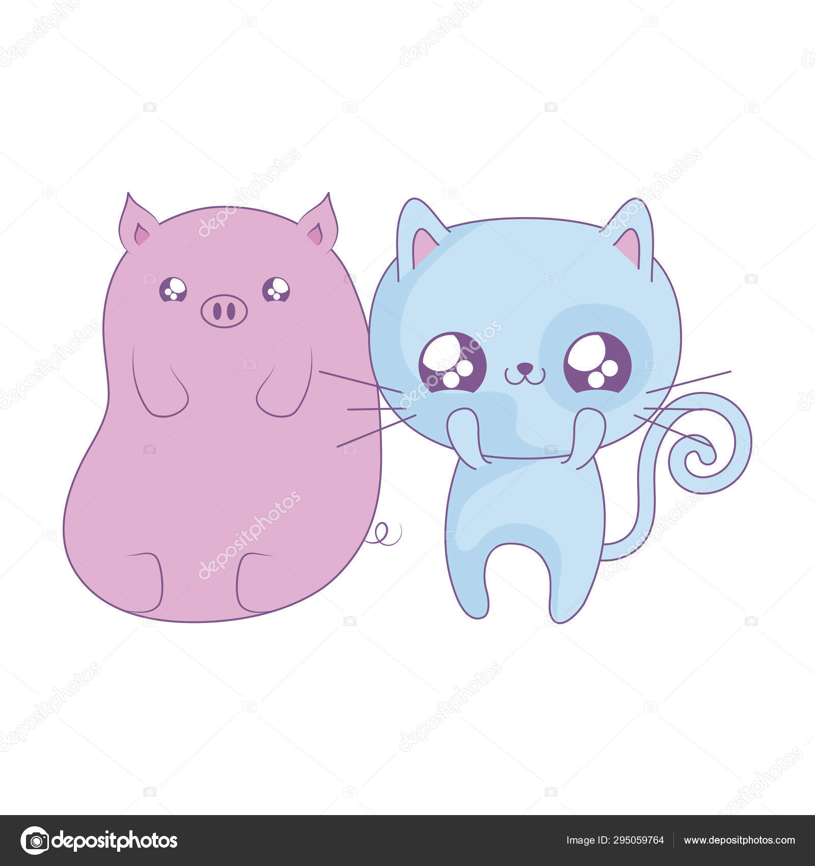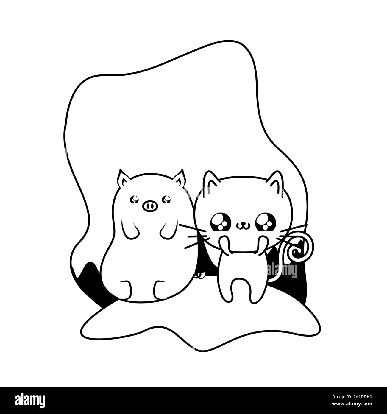 Lindo Gato Con Cerdito Animales Bebe Kawaii Diseno Ilustracion Vectorial Imagen Vector De Stock Alamy