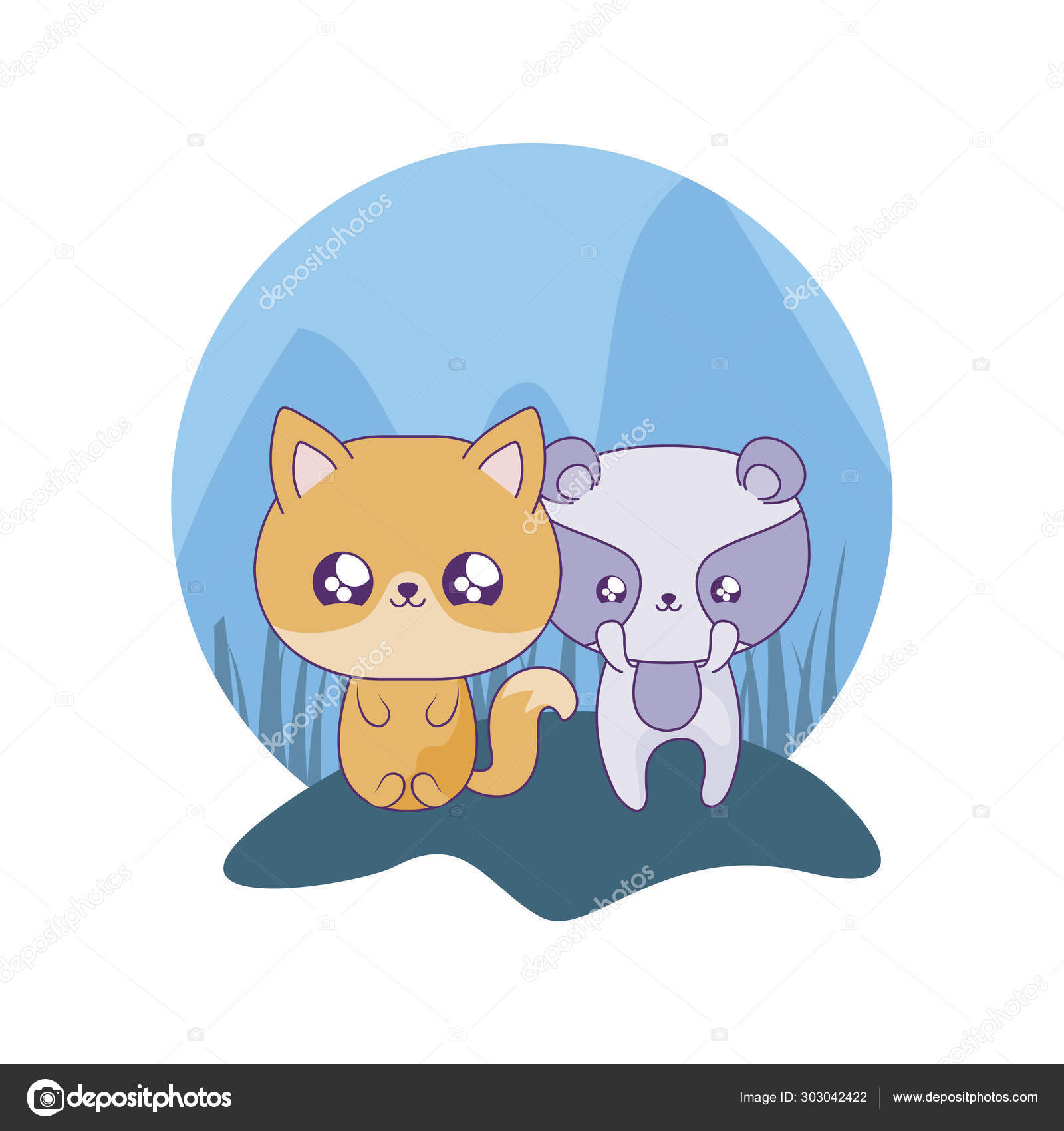 Un Lindo Gato Con Oso Panda Al Estilo De Animales De Bebe Kawaii Un Lindo Gato Con Osos Panda Animales De Bebe Kawaii Diseno