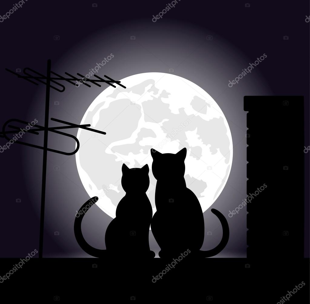 Gatos En Tejados Con El Fondo De La Luna Vector Stock De Ilustracion Ilustracion De Tejados Fondo 144937857
