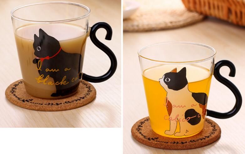 Gato De Dibujos Animados De Leche Taza De Cafe Taza De Cristal De Agua Copa Lindo Gatito Taza De Te Casa Oficina Taza De Jugo De Fruta Da Aliexpress