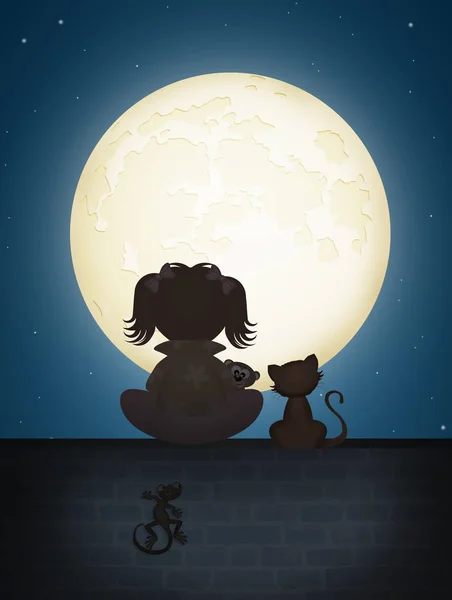 Chica Y Gato Sentados En La Luna Imagen Descargar Prf Ilustracion 630003220 Jpg Imagen Formato Es Lovepik Com
