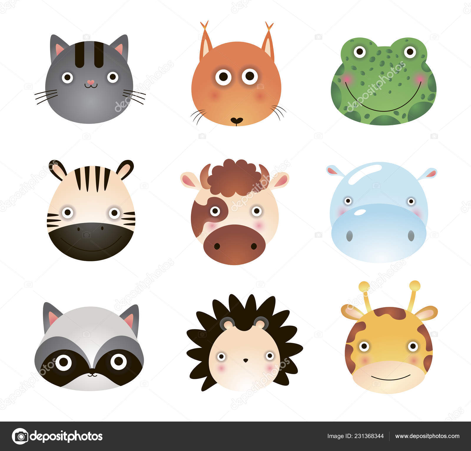 Animales De Dibujos Animados Lindos Gato Zorro Rana Jirafa Vaca Hipopotamo Cebra Mapache Zoologico De Dibujos Animados De Animales Lindos Vector De Stock C Greenpic Studio 231368344