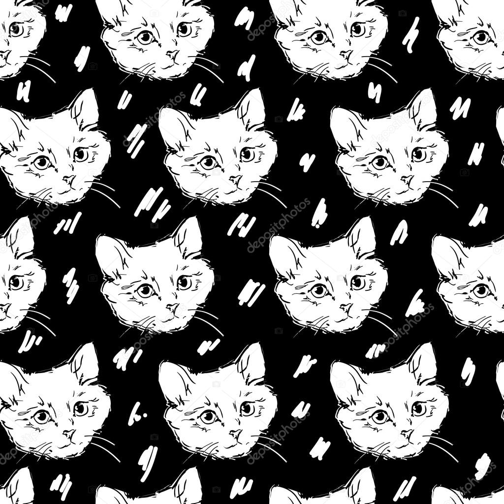 Animado Gato Sin Patron Sin Fisuras Con Los Gatos En Estilo De Dibujos Animados Gatos Negro Aislados Sobre Fondo Blanco Vector De Stock C Nadiia Kud Gmail Com 121226912