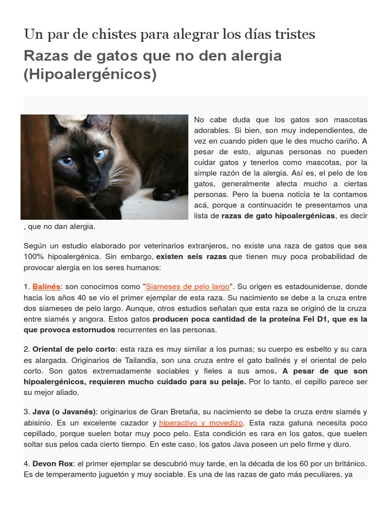 Gatos Hipoalergenicos Gatos Para Alergicos